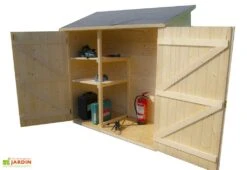 L’abri bûches est livré sans fond et doit être adossé à un mur. Le toit de l’abri possède une couverture en papier bitumé. Il est garanti 5 ans contre le pourrissement.