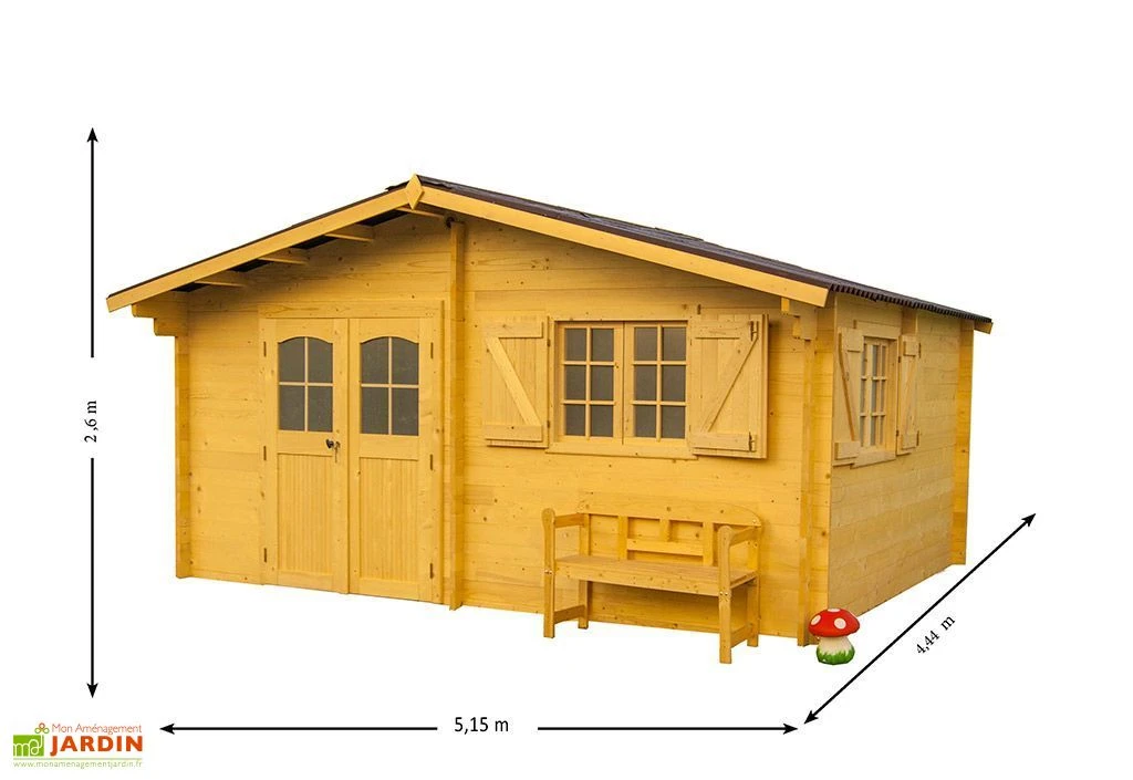 L’abri de jardin de chez Habrita est en épicéa massif PEFC. Il est constitué de madriers emboités de 42 mm d’épaisseur avec double rainurage. L’abri livré en kit se monte facilement grâce aux madriers emboités. Il mesure 4,44 m de profondeur, 5,15 m de largeur et 2,60 m de hauteur faitage. Il dispose d’une avancée de toit de 50 cm à l’avant et de 10 cm à l’arrière. L’abri est livré brut, à lasurer à l’intérieur et à l’extérieur tout de suite après le montage pour une bonne résistance à l’humidité et aux insectes xylophages.
