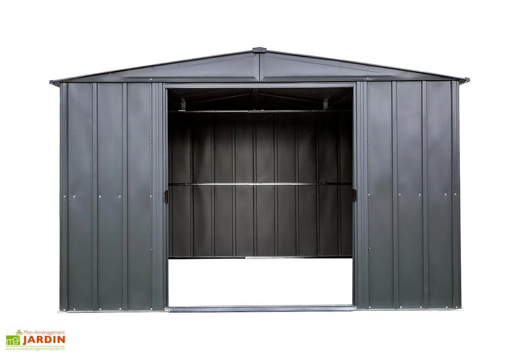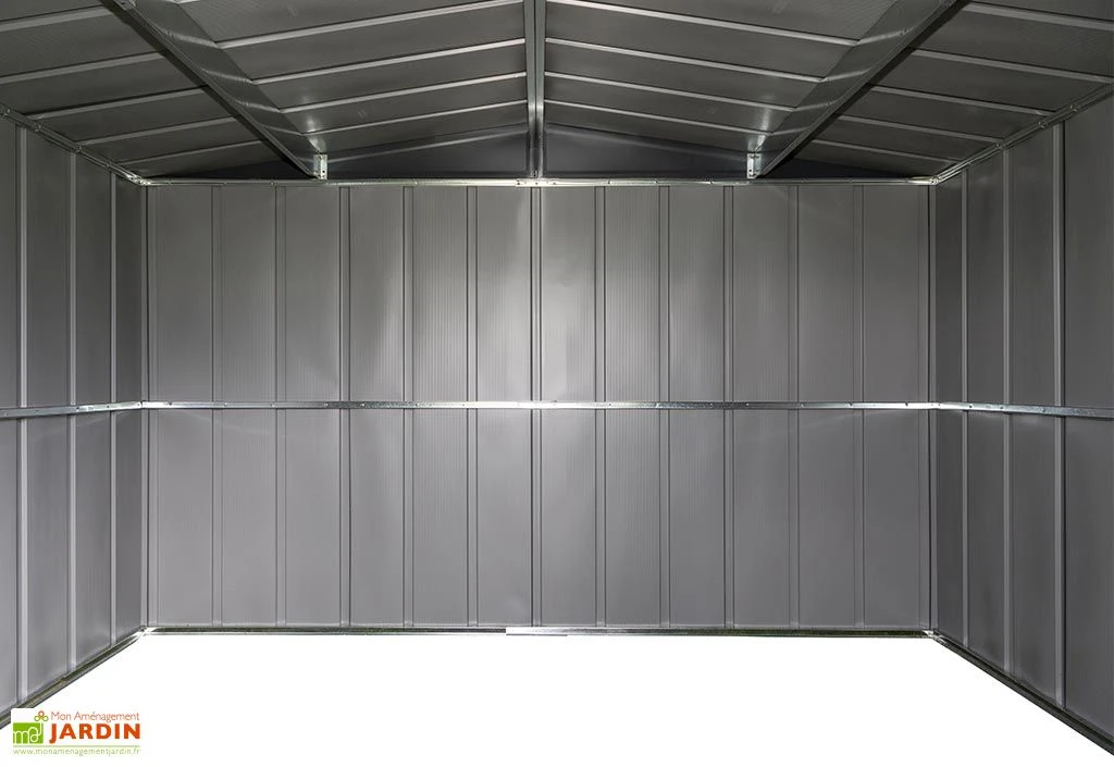 Ce cabanon de jardin en métal Spacemaker offre un bel espace intérieur de 8,5 m² dans lequel vous pourrez ranger du mobilier de jardin, des outils ou du matériel de jardinage à l’abri des intempéries et du vol. Il mesure 3,13 m de large sur 2,97 m de profondeur pour 1,98 m de haut et occupera une surface de 9,2 m² dans votre jardin. A noter, la présence d’une double porte coulissante de 141 x 165 cm par laquelle vous pourrez pénétrer aisément à l’intérieur de l’abri.