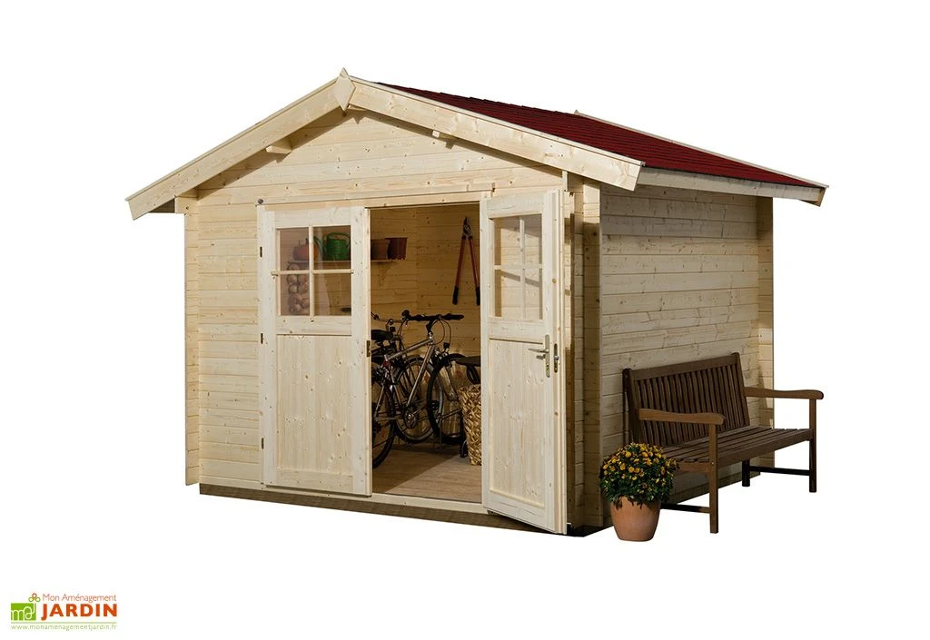 Cet abri de jardin en bois est doté de parois constituées de madriers de 28 mm d’épaisseur. Ces dernières accueillent un toit à deux pans de 19 mm d’épaisseur avec revêtement bitumeux. Le bois utilisé n’étant pas traité, vous devrez le protéger contre l’humidité, les moisissures et les insectes qui pourraient le détériorer. Il convient alors d’appliquer un insecticide/fongicide et de lasurer chaque pièce de l’abri avant de passer au montage.