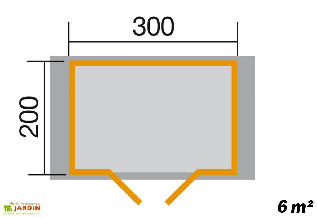 - Surface à couvrir pour l’abri de 6 m² : 9,2 m²