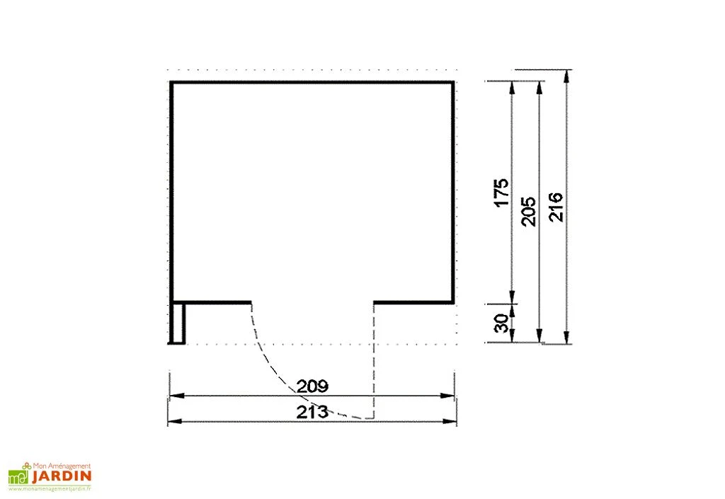 Cet abri de jardin en bois possède des parois composées de madriers de 21 mm d’épaisseur sur lesquelles repose un toit plat en bois massif de 16 mm d’épaisseur (surface du toit : 4,4 m²). Le toit est livré nu, et il est conseillé d’y poser une couverture étanche. Une membrane vous est proposée dans l’onglet « Accessoires ».