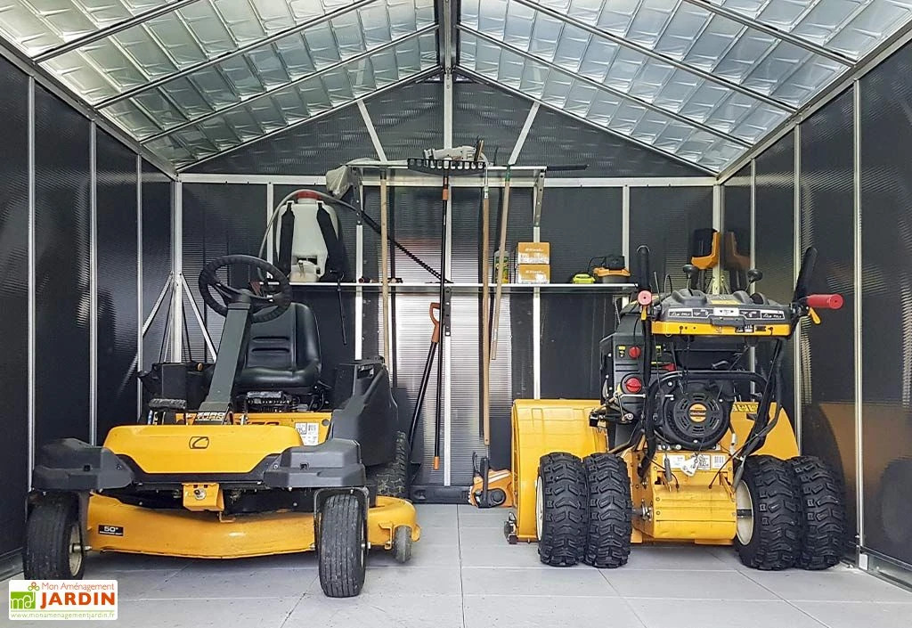 Le polycarbonate utilisé pour la conception des parois de ce cabanon de jardin possède également d’autres qualités intéressantes. Quasi incassables, ces panneaux ne se déformeront pas, pas plus qu’ils ne décoloreront. Ils sont en effet traités anti-UV, ce qui évite tout risque de jaunissement tout en protégeant l’intérieur de l’abri des rayons du soleil. Notez que l’accès à l’intérieur de l’abri se fera grâce à une double porte à seuil bas de 1,47 x 1,78 m qui pourra par ailleurs être verrouillée.