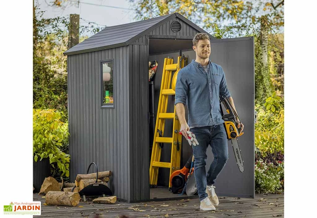 Idéal pour les petits extérieurs, l’abri de jardin Darwin 46 de la marque Chalêt-Jardin offre un espace intérieur de 1,9 m² que vous pourrez mettre à profit pour ranger du matériel de jardinage ou des outils, par exemple. Il est fabriqué en polypropylène extrudé et revêt une finition grise discrète qui lui permettra de s’intégrer plus facilement dans votre jardin.