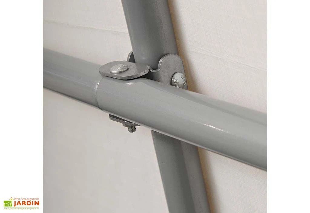 Solide et très stable, cet abri de jardin démontable se compose d’une structure en acier de 3,5 cm d’épaisseur et d’une bâche en polyéthylène de 210 g/m². Totalement imperméable et traitée anti-UV, cette dernière témoignera d’une belle résistance aux intempéries et ne décolorera pas. L’acier est pour sa part traité de sorte à ne pas rouiller.