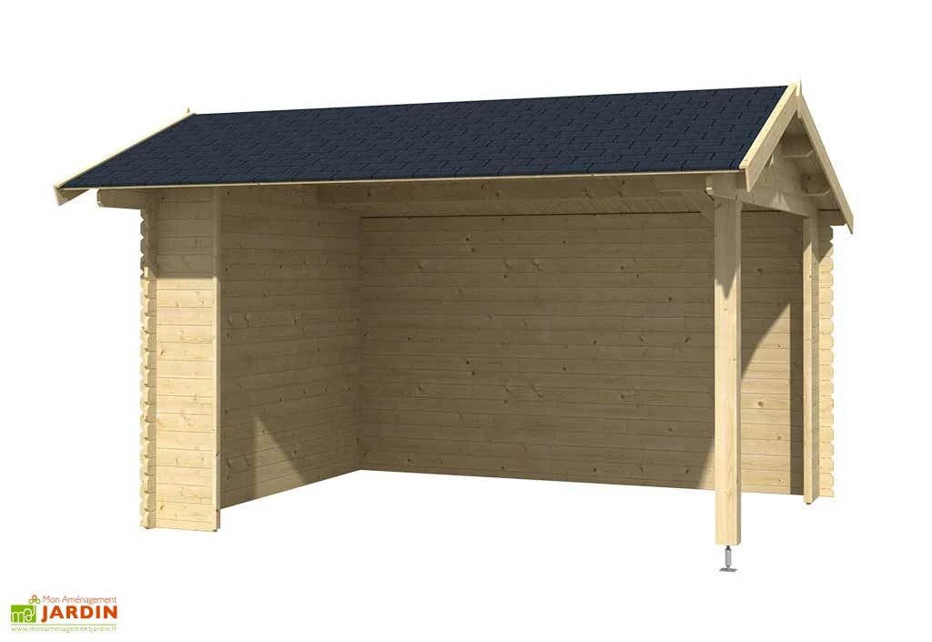 Cet abri vous sera livré accompagné d’un revêtement de toiture temporaire (toile bitumée) mais la pose de bardeaux est conseillée afin de garantir une étanchéité parfaite de la toiture.