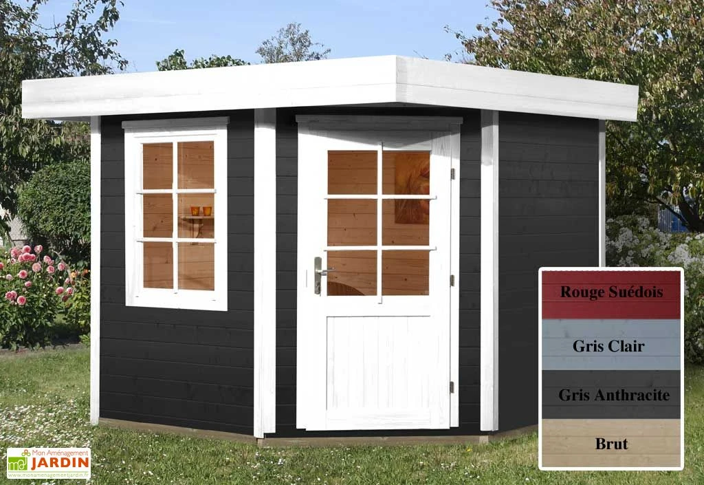 Votre abri en bois Fides est équipé d’une porte simple de 0,81 x 1,73 m (l,h) située dans un angle et d’une fenêtre. Le toit possède un débord de 50 cm en avant, 24 cm en arrière et 20 cm sur les côtés. La hauteur totale de votre abri est de 2,24 m. Deux dimensions sont proposées dans vos options : 2,40 x 2,40 m (l,l) ou 3 x 3 m (l,l). Votre abri est décliné en 4 coloris : brut, rouge suédois, gris clair ou gris anthracite, vous permettant ainsi de l’adapter à votre extérieur.