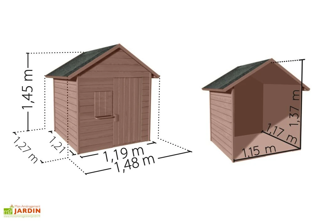 - Hors tout = 1,48 x 1,27 x 1,45 m