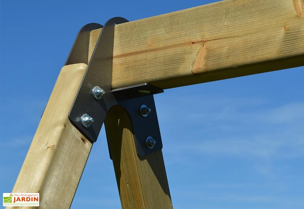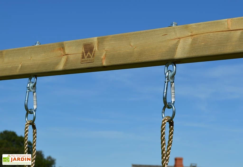 Cette aire de jeux en bois est garantie 2 ans.