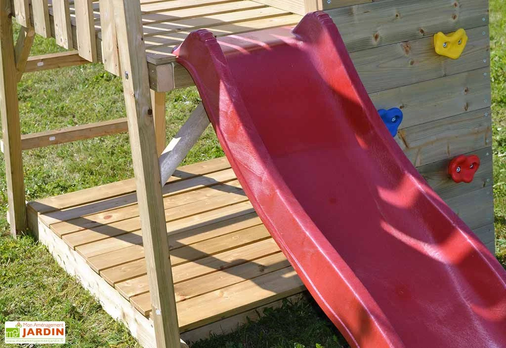 A noter : cette aire de jeux extérieure est livrée en kit, à monter soi-même.
