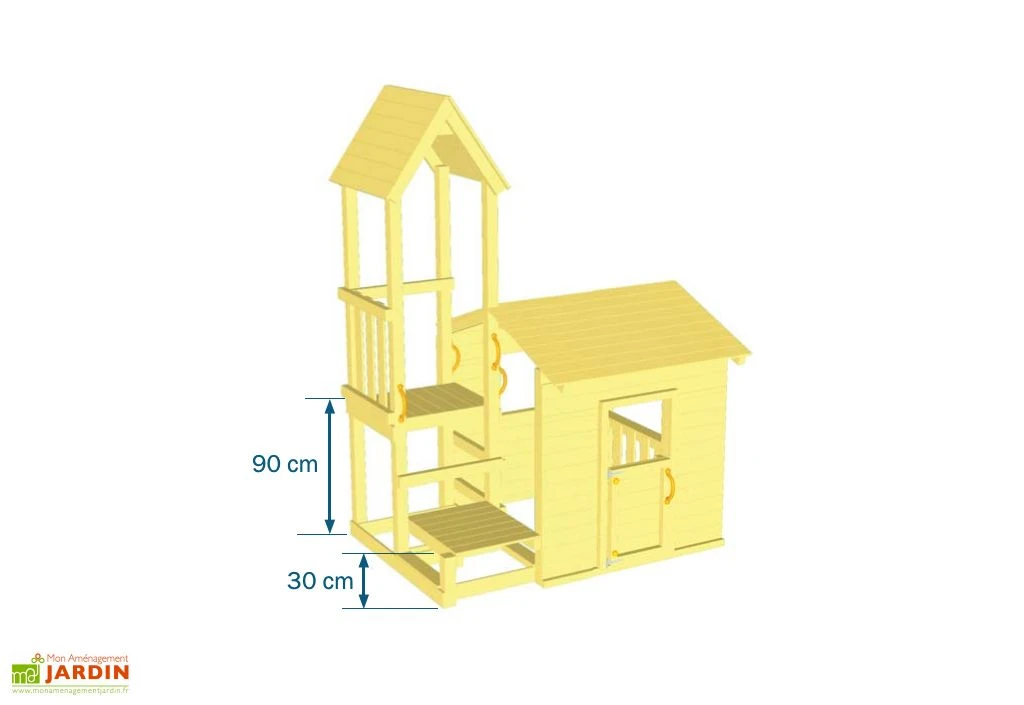 Cette aire de jeux en bois est donc composée d’une tour avec plateforme de 90 cm de haut, facilement accessible grâce à une seconde plateforme, plus petite, de 30 cm. Cette plateforme dessert un toboggan en plastique d’une longueur de glisse de 175 cm. Cette station de jeux étant livrée en kit, vous devrez la monter vous-même dans un espace suffisamment grand pour prévoir un périmètre d’environ 2 m tout autour de l’aire. Vos enfants pourront alors s’amuser en toute sécurité.