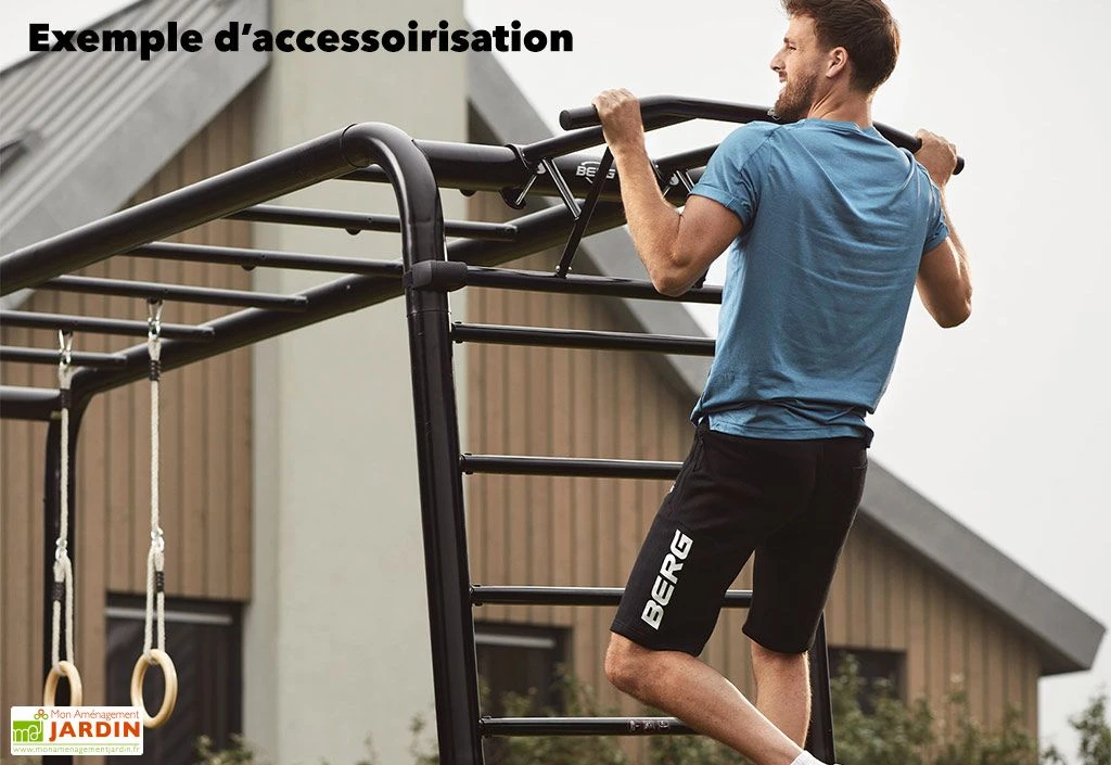 Installez, retirez et échangez tous les accessoires en un instant et profitez ainsi d’une aire de jeux différente tous les jours si vous le souhaitez ! Berg vous propose des agrès traditionnels comme des balançoires ou un siège bébé mais aussi des agrès plus originaux comme un hamac ou un disque en bois.