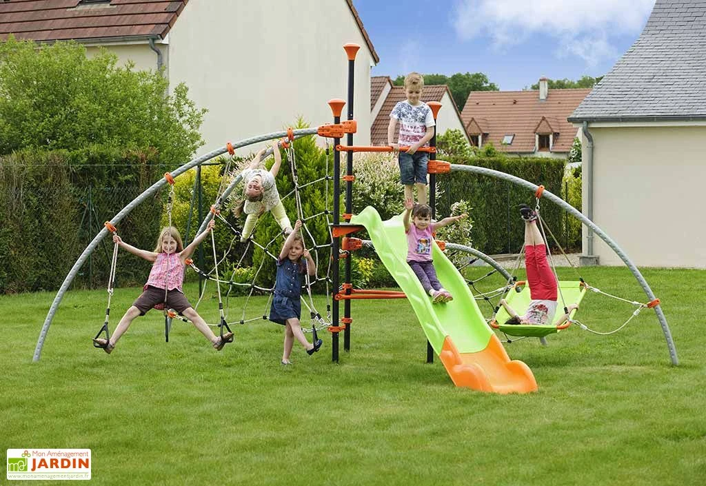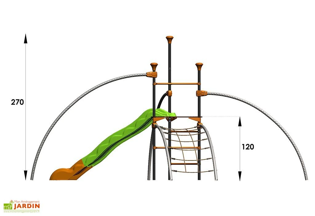 L’aire de jeux favorise les notions de partage et d’observation et développe l’agilité, la force, l‘adresse et la stratégie de l’enfant. Les enfants vont adorer cette structure imitant les jeux que l’on peut trouver dans les parcs ou jardins d’enfants. La garantie est de 10 ans sur la structure et de 2 ans sur les agrès.