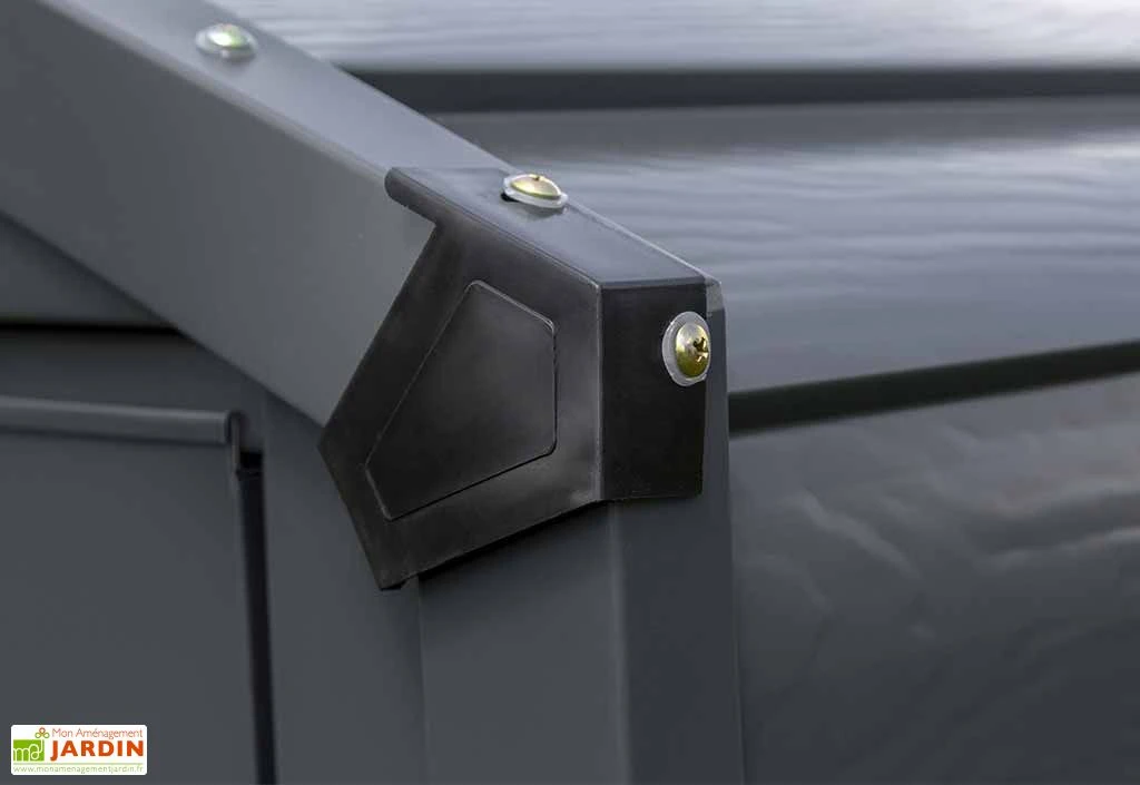 Cette armoire de rangement d’extérieur profite d’une délicate finition anthracite dont la sobriété lui permettra de s’intégrer aisément dans tout type d’extérieur. Elle est fabriquée à partir de tôle d’acier galvanisé de 0,3 mm d’épaisseur et ne vous demandera aucun entretien particulier. L’acier galvanisé possède en effet l’avantage d’être très résistant, notamment à la corrosion, aux chocs et en cas d’intempéries, le tout sans demander de traitement préalable. Notez enfin que cette armoire de jardin vous sera livrée en kit. Vous devrez donc procéder vous-même à l’assemblage des différents éléments qui la composent ainsi qu’à son installation dans votre jardin.