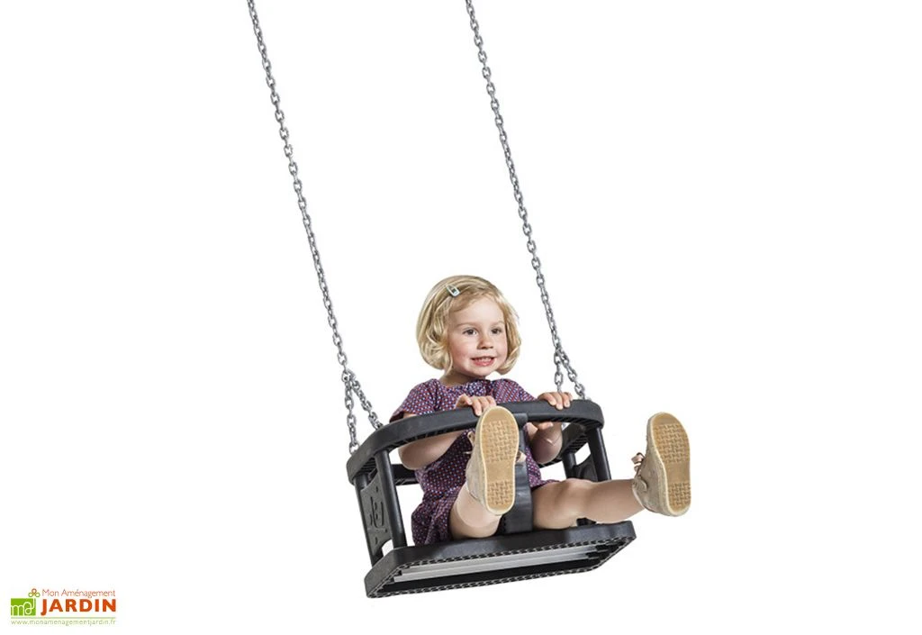 La balançoire pour bébé est une balançoire proposée par KBT compatible avec les structures pour collectivités. Elle est composée d’une assise en TPE (élastomère thermoplastique) moulée par injection et renforcée d’une plaque d’aluminium de 4 mm d’épaisseur.