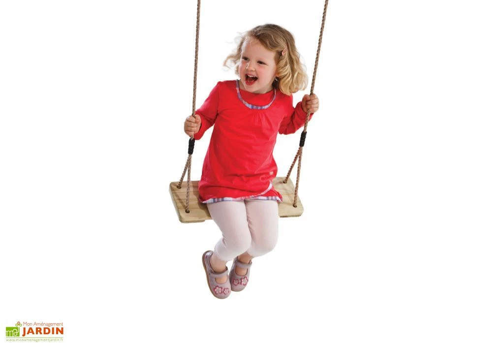 Votre balançoire en pin traité aux sels de cuivre dispose d’anneaux de suspension et de huit de réglage en acier galvanisé afin de vous permettre de l’installer sur un portique de 185 à 240 cm de haut. Les surmoulage sont en polypropylène noir. La balançoire mesure 44 cm de large pour 17,5 cm de profondeur et une épaisseur de 28 mm.