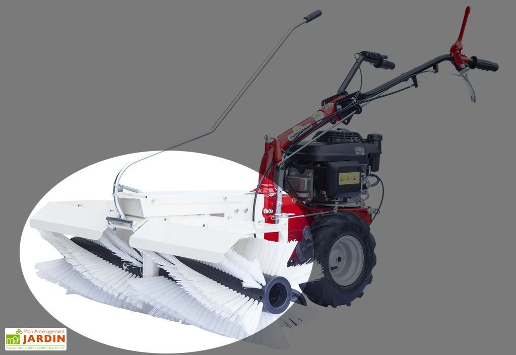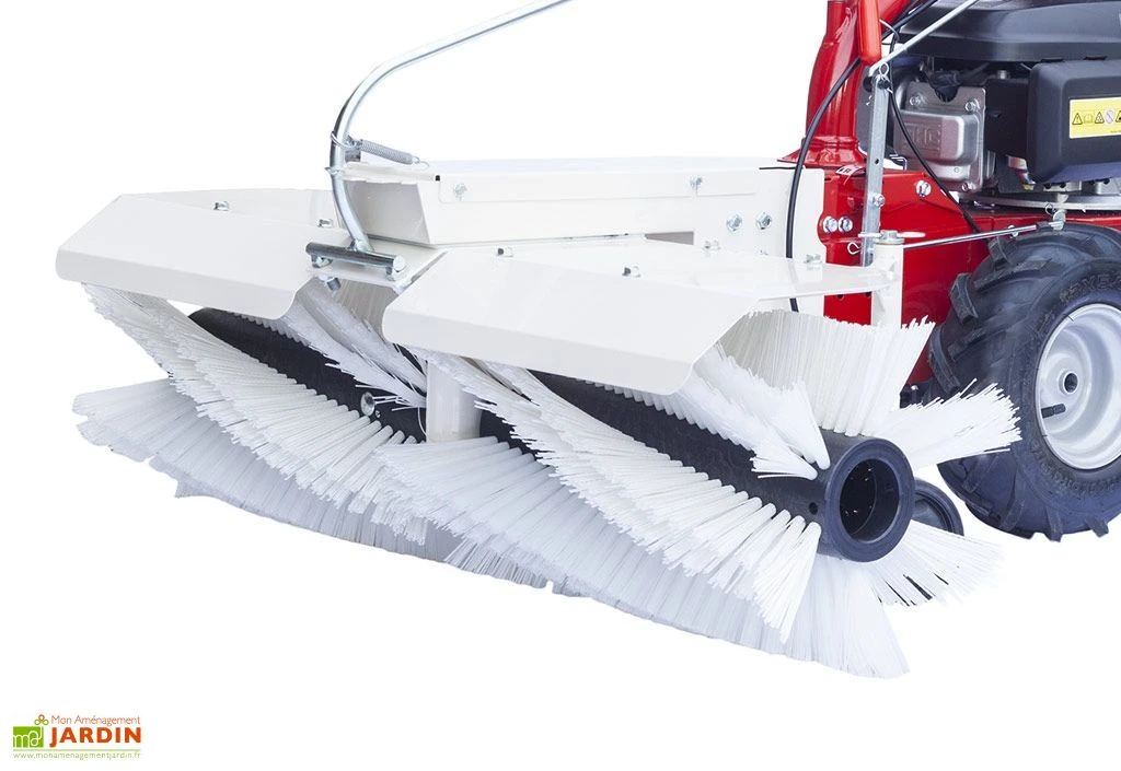 La balayeuse est un accessoire à installer sur le Porte Outils Thermique Multifonctions 190 CC – P55 de chez Eurosystems. Le balai mesure 105 cm de largeur et 31 cm de diamètre. Il est réglable en hauteur et orientable en 5 positions. Le balai frontal peut être commandé en même temps que le porte outils, dans ce cas les frais de port sont offerts. Si vous disposez déjà du porte outils, vous pouvez choisir une livraison seule. Dans ce cas il est nécessaire de choisir l’option « Livrée seule » dans le menu déroulant.