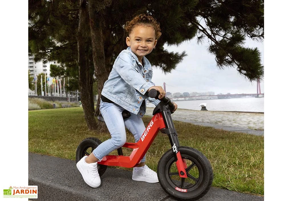 Cette draisienne de la marque Berg est parfaite pour permettre à votre enfant d’apprendre l’équilibre mais également le développement de ses réflexes et la coordination motrice, tout en s’amusant ! Elle convient à des enfants âgés de 2 à 5 ans mesurant entre 85 et 115 cm. Le vélo mesure 82,5 x 41,5 cm, pour 47,5 cm de haut.