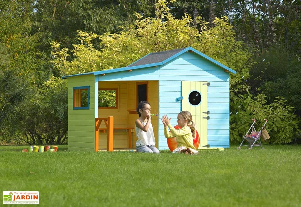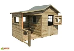La cabane en bois de la marque Soulet est destinée à des enfants à partir de 3 ans. Elle séduit grâce à son originalité puisqu’elle se compose d’une partie maisonnette et d’un abri couvert. Le bois, livré non peint, vous permet de la personnaliser au maximum. Vous pouvez utiliser une peinture à base d’eau pour offrir la possibilité aux enfants de peindre eux-mêmes leur cabane.