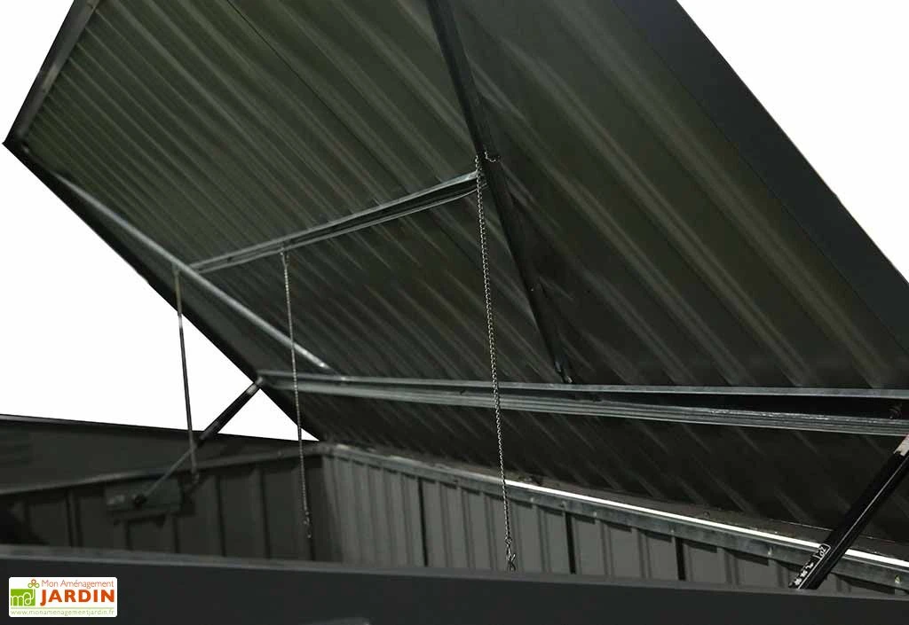 Entièrement fabriquĂ© en acier galvanisĂ©, cet abri pour poubelles ne craindra ni les chocs ni le mauvais temps, le tout sans demander d’entretien particulier. Sa finition gris anthracite lui permettra par ailleurs de s’intĂ©grer plus facilement dans votre extĂ©rieur.Â