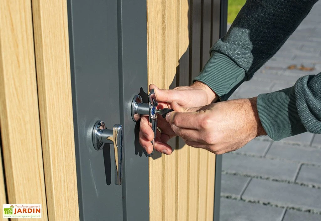 Cet abri poubelle extérieur Westmann mesure 134 cm de longueur, 84 cm de profondeur et 125 cm de hauteur (dimensions intérieures : 133 x 80 x 114 cm) et comprend 2 portes battantes individuelles qui permettront de dissimuler chacune une poubelle de 240 litres. Les poignées sont verrouillables, vous permettant de transformer l’abri en coffre de rangement par exemple. Le seuil bas permet d’entrer et de sortir facilement les 2 poubelles.