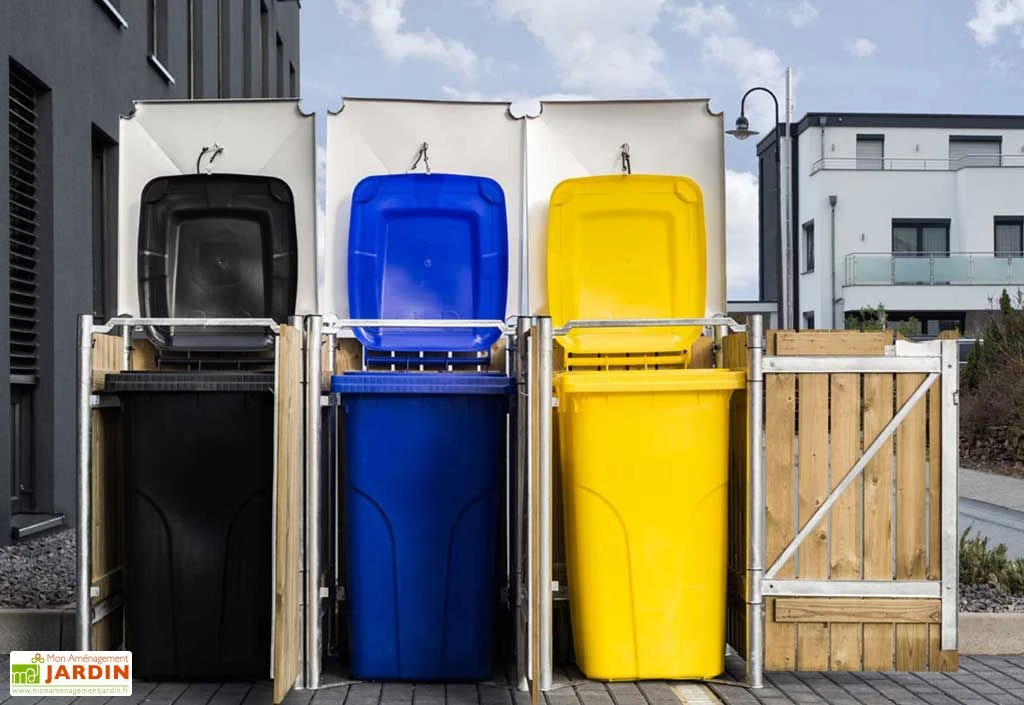 Cet abri pour poubelles en bois mesure 209,1 x 80,7 cm, pour 115,2 cm de haut, ce qui lui permet d’accueillir trois bennes de 240 L. Ses trois portes frontales et couvercles permettent de remplir et de sortir facilement les conteneurs. L’ensemble se montrera idéal pour protéger vos poubelles des agressions extérieures (météo, animaux…) tout en les plaçant hors de vue. Livré en kit, ce cache-poubelle en bois est à monter soi-même.