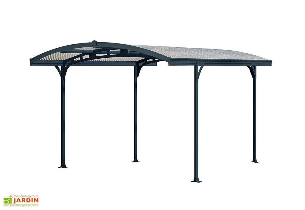 La toiture de cet abri pour voiture est constituée de panneaux de polycarbonate ondulés ultra-résistants de 0,7 mm d’épaisseur. Ces panneaux teintés bronze laissent passer 10% de la lumière naturelle tout en filtrant les rayons UV. Très solide, notamment en cas de grêle, cette couverture pourra supporter une charge de 100 kg/m², en cas de chutes de neige par exemple. A noter également, la présence d’un système de gouttières permettant un écoulement efficace des eaux pluviales.