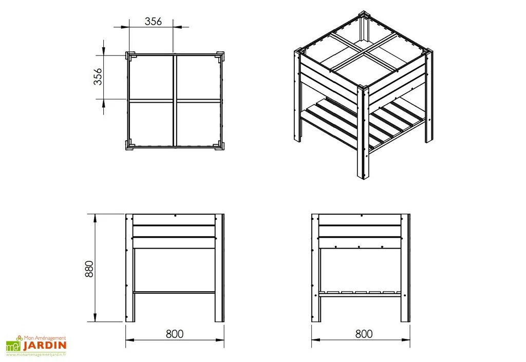 Carré Potager En Bois Autoclave Sur Pieds 80 X 80 Cm H. 88 Cm – Rezekne