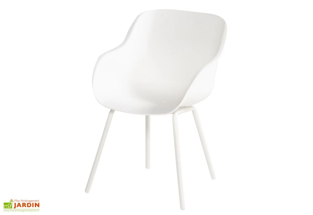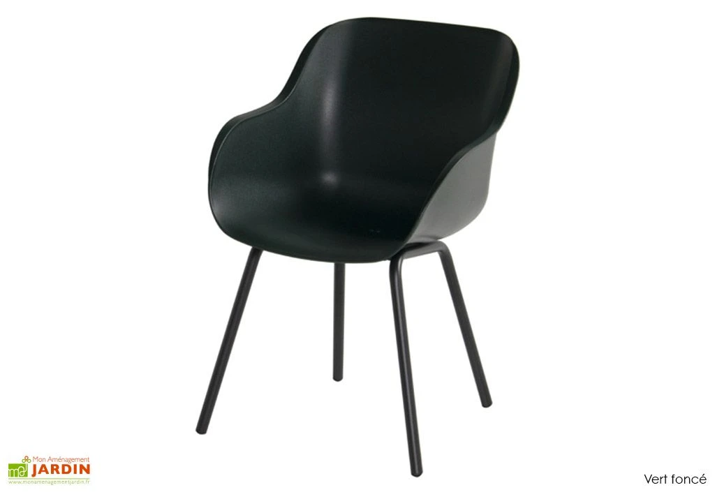 Léger et donc facile à déplacer, ce fauteuil de jardin pourra supporter un poids maximum de 130 kg. Il ne vous demandera par ailleurs aucun entretien particulier, l’aluminium ne craignant pas la rouille et la résine étant très résistante face aux intempéries. Le tout se montrera également insensible aux rayons UV, ce qui signifie que vos sièges de jardin ne décoloreront pas au fil du temps.