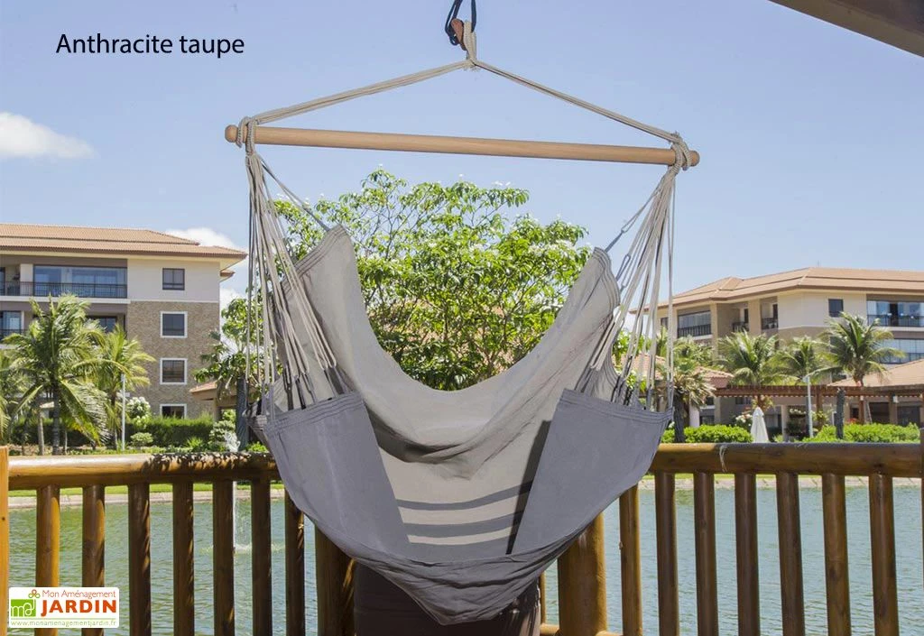 La toile de la chaise mesure 125 x 110 cm et sera assez grande pour vous accueillir comme dans un cocon. La balancelle pourra supporter un poids maximum de 120 kg.
