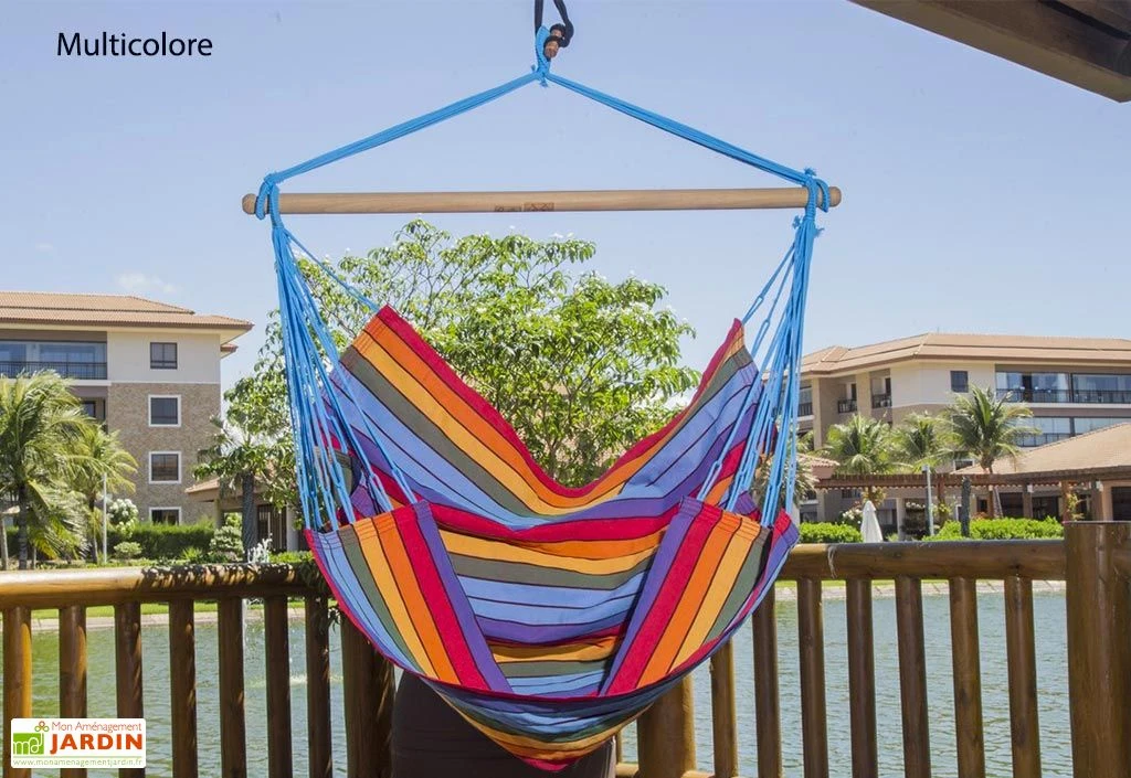 Issue d’une fabrication brésilienne, la balancelle est le fruit d’un savoir-faire certain, qui nous offre des tissus de qualité et colorés à l’image du pays de la samba. Le tissu utilisé est adapté à la vie en extérieur et possède des fibres qui résistent aux intempéries.