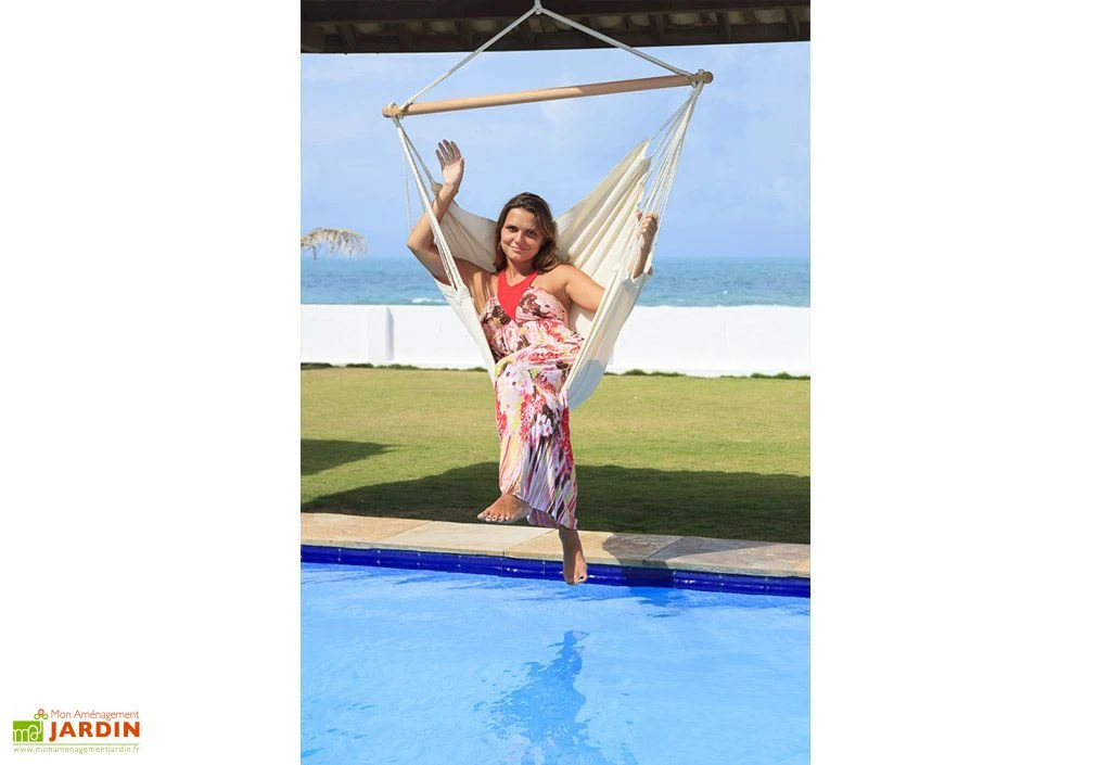Ce hamac Ă pendre est parfait pour profiter d’une sieste au soleil, ou pour ĂŞtre installĂ© dans une chambre ou un salon. Il apporte une touche cosy et relaxante et sa couleur couleur Ă©crue se fond dans n’importe quel environnement.  La barre en bois maintenant la toile mesure 110 cm.Â