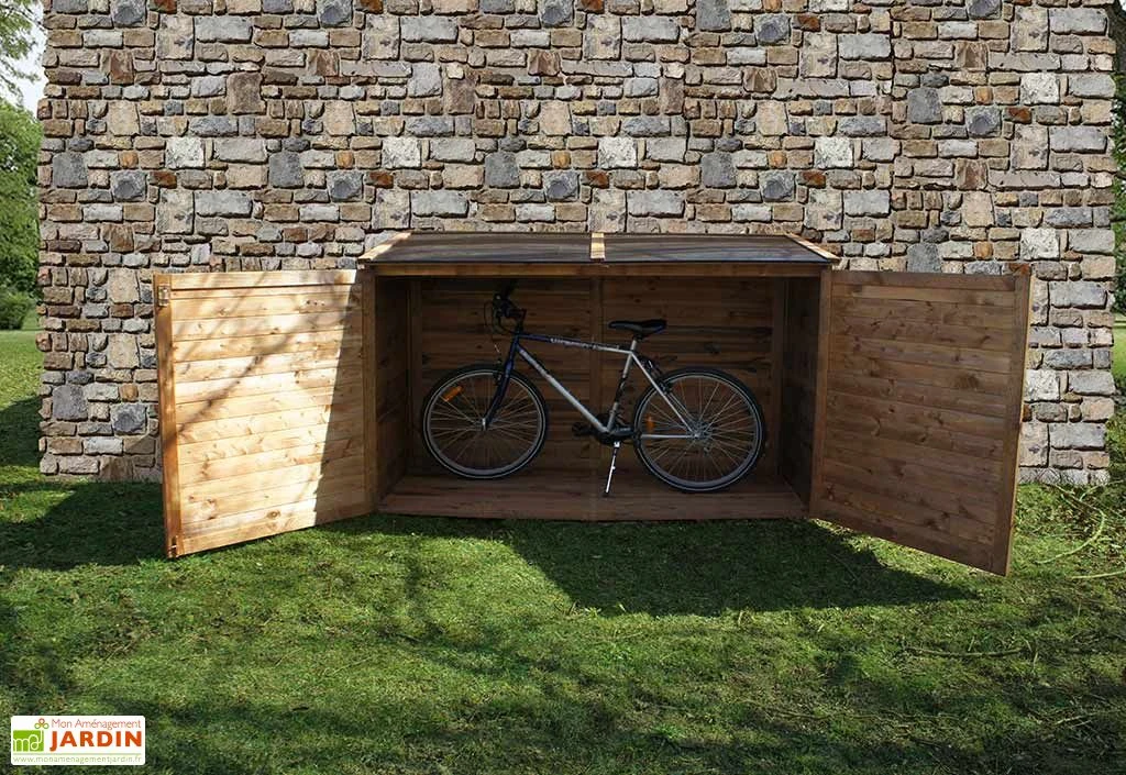 Le coffre de rangement en bois s’ouvre par le devant grĂące Ă une double porte verrouillable (cadenas non fourni). Le plancher est inclus. La garantie est de 2 ans.