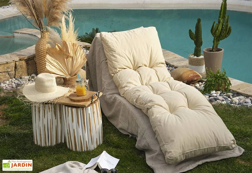 Ce coussin pour bain de soleil est parfait pour bronzer, lire un livre ou pour tout simplement vous y reposer durant les journées ensoleillées. Vous pouvez le disposer sur votre transat ou à même le sol. Le bain de soleil est fabriqué à partir de polyester et de coton, doublé d’une couche protectrice offrant une meilleure résistance.