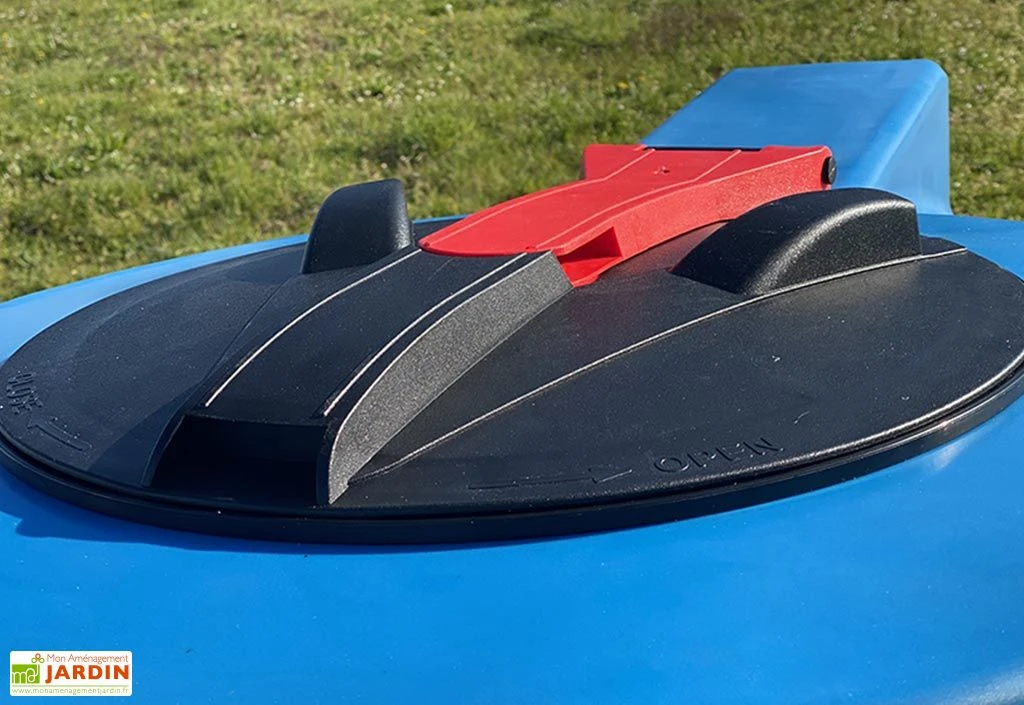 Fabriquée en France, cette citerne de stockage d’eau est équipée d’un couvercle basculant à 180° (trou d’homme de 43,8 cm de diamètre, pour un nettoyage plus facile de la cuve) et d’un raccord rapide à embrayage (embout mâle fileté G1 ¼) avec joint en EDPM alimentaire, pour une étanchéité parfaite. Elle s’est également vue dotée d’un trou pour anneau de levage permettant de faciliter l’installation et le déplacement de l’ensemble.