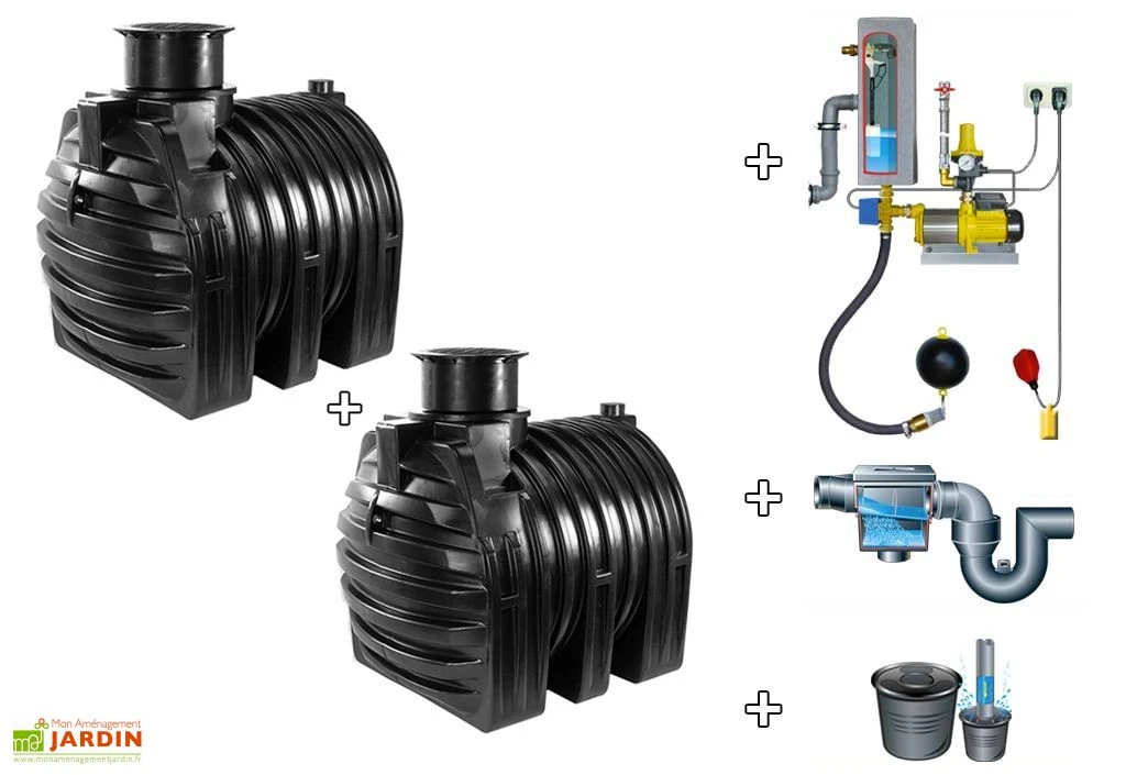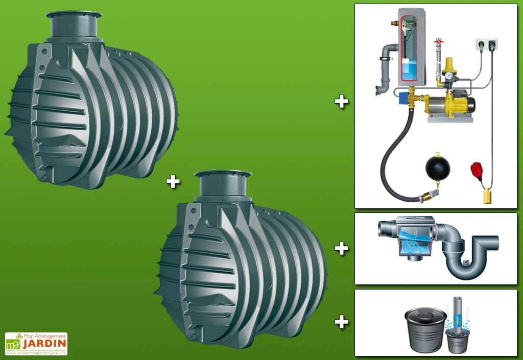 Votre cuve de récupération d’eau de chez GreenLife est à enterrer. Ce kit comprend 2 cuves de 4500 L, soit une capacité totale de 9000 L. Il comprend aussi un filtre de cuve afin de filtrer les impuretés présentes dans l’eau de pluie qui entre dans le récupérateur, un stabilisateur que l’on place au fond de la cuve pour que l’eau ne remue pas les impuretés tombées au fond de la cuve, un siphon de trop-plein, un module d’alimentation en eau potable qui permet de passer automatiquement sur l’eau courante lorsque la cuve est vide et un filtre d’aspiration flottant permettant de récupérer l’eau en haut de la cuve, où elle est la plus claire possible, et de l’envoyer vers les canalisations. Votre kit vous permet d’arroser votre jardin grâce à l’eau de pluie récupérée, mais aussi d’alimenter vos toilettes ou votre lave-linge. Lorsque votre cuve est vide, le module d’alimentation en eau potable GRM 2.0 passe automatiquement sur l’eau de ville pour que vos équipements ne manquent jamais d’eau. Le tuyau d’aspiration mesure 10 mètres de long. Lorsque la cuve se remplie à nouveau, les équipements sont ré-alimentés par l’eau de pluie. Votre cuve vous sera livrée face à votre domicile. Prévoir du matériel ou des personnes lors de la livraison car le transporteur peut vous solliciter pour le déchargement. La cuve est garantie 15 ans et les accessoires sont garantis 2 ans.