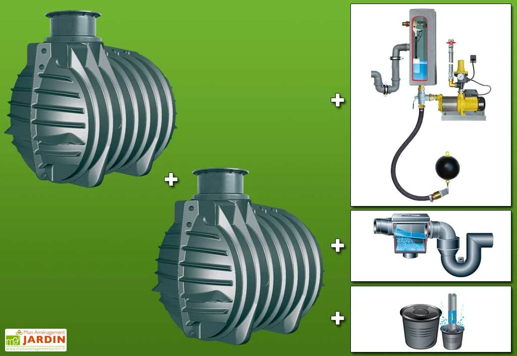 Vos deux cuves de rĂ©cupĂ©ration d’eau de chez GreenLife sont en polyĂ©thylène haute densitĂ© (PEHD). Elles peuvent contenir jusqu’Ă 4500 litres. Vous pouvez ainsi stocker 9000 L d’eau dans ces cuves. La fabrication allemande vous garantie une qualitĂ© optimale. Ces cuves sont Ă enterrer obligatoirement avant d’ĂŞtre remplies. Elles ne rĂ©sisteraient pas Ă un remplissage en extĂ©rieur et viendraient Ă casser. Vos cuves sont livrĂ©es avec un kit permettant d’alimenter aussi bien la maison que le jardin, en passant par l’eau de pluie contenue dans la cuve et par l’eau courante. Le module d’alimentation GRM 3.0 donc sont pourvues les cuves, permet de passer manuellement de l’eau de pluie Ă l’eau de ville. Lorsque la cuve est vide, vous pouvez passer sur l’eau de ville pour ne jamais manquer d’eau. Les deux eaux ne se croisent jamais, ainsi il n’y a aucune chance que l’eau de pluie ne remontent dans les canalisations destinĂ©es Ă recevoir l’eau potable. Le kit contient : 2 cuves avec dĂ´me, couvercle, filtre, stabilisateur et siphon intĂ©grĂ©s ; un module GRM 3.0 pour passer de l’eau de pluie Ă l’eau potable et inversement ; un tuyau d’aspiration de 10 mètres ; un filtre d’aspiration flottant et du matĂ©riel de marquage. Votre kit vous permet d’arroser votre jardin et d’alimenter vos toilettes, votre lave-linge et tout autre Ă©quipement pouvant recevoir de l’eau non-potable. Les cuves sont garanties 15 ans et les accessoires 2 ans et sont livrĂ©es face au domicile du client. PrĂ©voir du matĂ©riel ou des personnes lors de la livraison car le transporteur peut vous solliciter pour le dĂ©chargement.