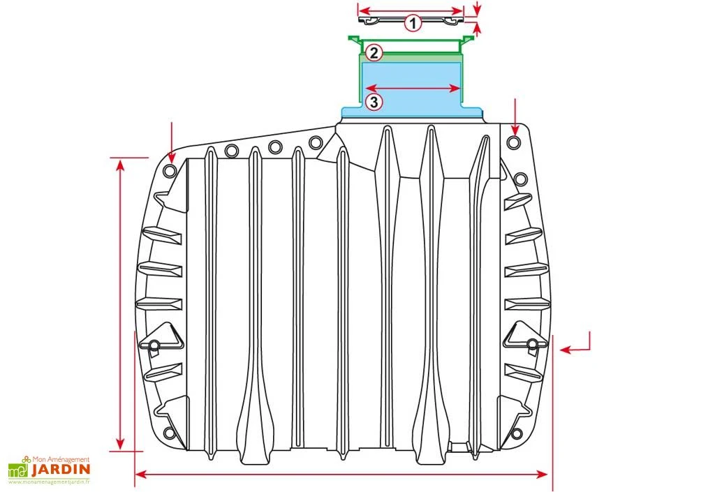 Votre cuve de rĂ©cupĂ©ration d’eau de pluie de chez GreenLife est en polyĂ©thylĂšne haute densitĂ© (PEHD). L’origine allemande de la cuve vous garantit une grande qualitĂ© et une sĂ©curitĂ© importante. Cette cuve doit nĂ©cessairement ĂȘtre enterrĂ©e. Une cuve ayant pour vocation d’ĂȘtre enterrĂ©e ne peut servir de rĂ©cupĂ©rateur d’eau aĂ©rien. Une cuve Ă enterrer remplie Ă l’extĂ©rieur Ă©claterait. L’eau rĂ©coltĂ©e servira Ă arroser votre jardin et alimenter votre maison. Attention, l’eau ne sera pas potable. Cette cuve dispose d’un dĂŽme coulissant, de 3 raccords DN100 et d’une protection de sĂ©curitĂ© en plastique. La garantie est de 15 ans. La cuve est livrĂ©e face au domicile du client. Pour le dĂ©chargement, lâaide du client peut ĂȘtre demandĂ©e (prĂ©voir le matĂ©riel ou des personnes sur place).