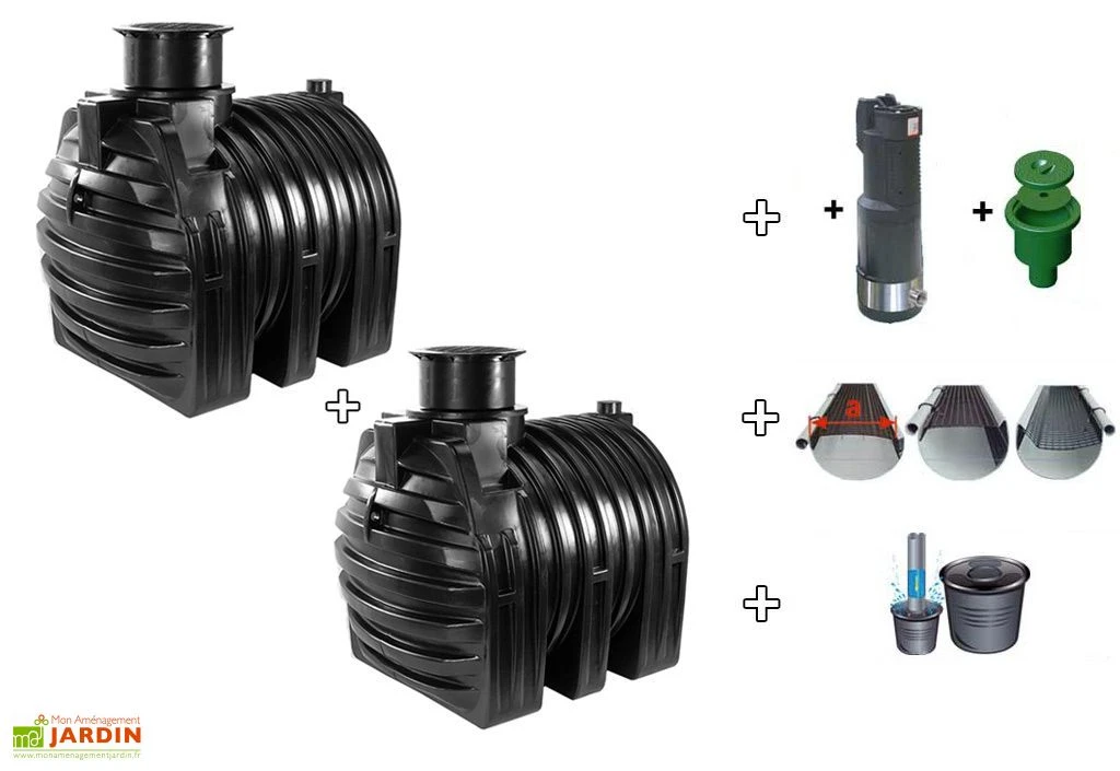 Votre kit de récupération d’eau de pluie de chez GreenLife comprend deux cuves à enterrer de 4500 litres, soit une contenance totale de 9000 litres. Ces deux cuves en polyéthylène sont livrées avec un dôme de compensation et un couvercle de sécurité chacune, un stabilisateur d’arrivée d’eau permettant de ne pas remuer l’eau au fond de la cuve, une pompe immergée, un boitier de branchement, une protection de gouttière pour éviter les feuilles mortes, un tuyau d’une taille de 5 mètres et du matériel de marquage. La pompe possède un filtre aspirant lui permettant de ne pas aspirer les impuretés, un interrupteur automatique et une protection contre la marche à sec. La pompe se met en route dès qu’un des robinets est ouvert. Elle résiste au gel. Votre kit vous servira à récupérer l’eau de pluie et à la réutiliser pour entretenir votre jardin. La garantie est de 15 ans sur les cuves et de 2 ans sur le reste du kit. La cuve est livrée face au domicile du client. Pour le déchargement, l’aide du client peut être demandée (prévoir le matériel ou des personnes sur place).
