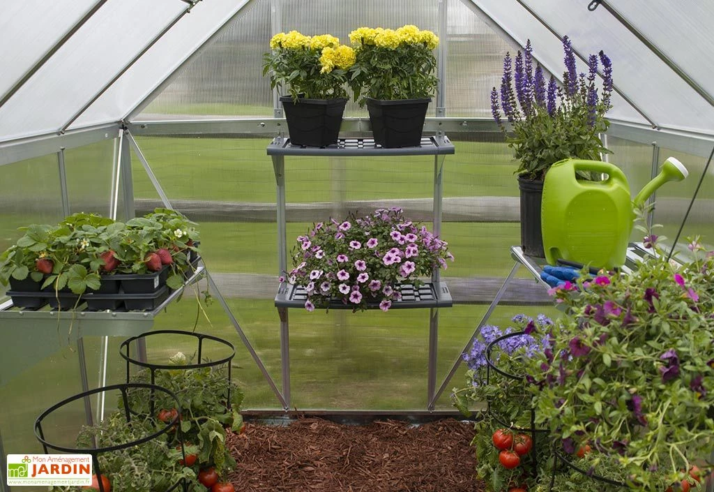 Cette étagère double, signée Palram-Canopia, est idéale pour l’aménagement de votre serre de jardin. Facile à monter et à démonter, elle vous évitera en effet d’encombrer le sol de votre serre et contribuera à l’organisation de votre espace de culture. Les deux étagères sont modulables, et pourront être utilisées séparément ou réunies afin d’obtenir une grande tablette.