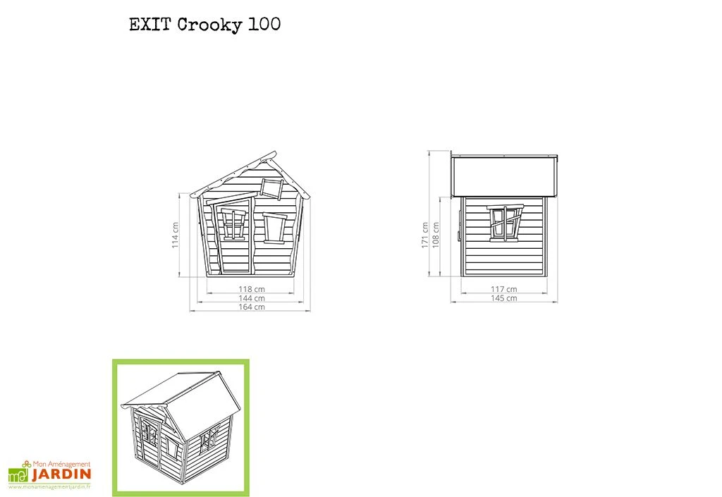 La maisonnette pour enfant Crooky 100 de chez Exit Toys est entièrement fabriquée en cèdre séché. Cette essence possède l’avantage d’être naturellement résistante à l’humidité. Aucun traitement chimique n’est donc ajouté et les parois de la cabane sont peintes avec une lasure en phase aqueuse. Notez que le bois utilisé est certifié FSC. Il provient donc de forêts gérées de manière écologique.