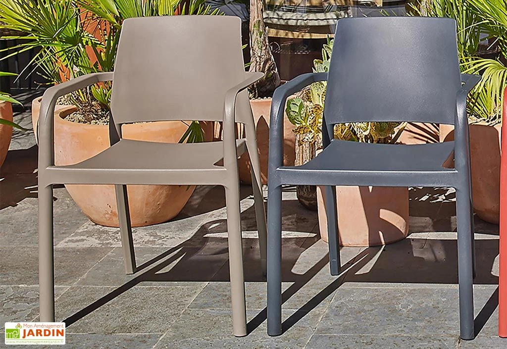 Disponible en 2 coloris différents, ce fauteuil sobre et épuré se mariera parfaitement avec tous les styles de tables. Il est conçu intégralement en polypropylène renforcé avec de la fibre de verre et il est 100% recyclable. Pour un poids total de 4,8 kg, il est léger et robuste, et résiste aisément aux chocs ainsi qu’aux différentes conditions extérieures. Des embouts antidérapants, pour renforcer sa stabilité sont également inclus. Le fauteuil peut supporter une charge de 120 kg maximum.