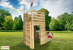 Cabane Maison Enfant En Bois Brut Avec Etage Mezzanine Duplex