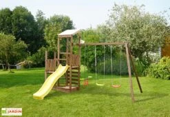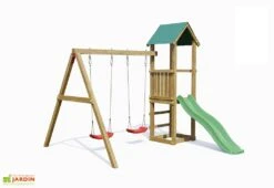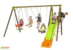 Portique En Bois Toboggan + Balancelle + 2 Balançoires – Narcisse