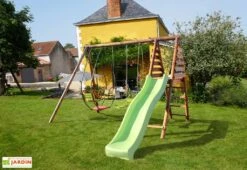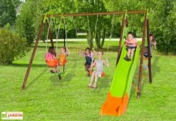 Portique En Bois Pour 5 Enfants Toboggan + 3 Agrès – Nigel