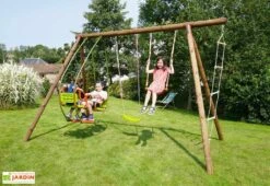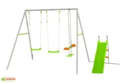 Portique Balançoires + Toboggan + Cabane Bois Et Métal Legato