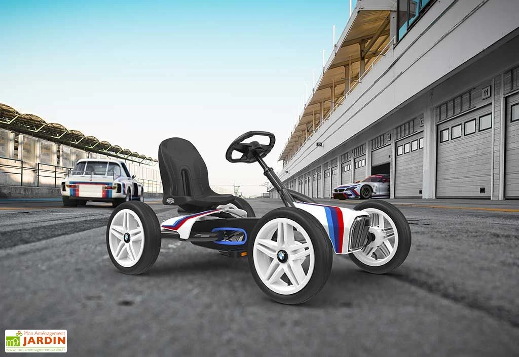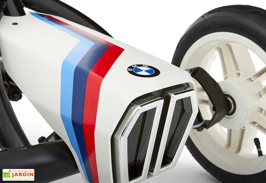 Le kart à pédales BWM Street Racer de chez Berg revêt les couleurs de la célèbre marque allemande. Pensé pour la course, il garantit une très bonne tenue de route grâce à un essieu central oscillant, pour une adhérence parfaite. Il est également doté de pneus à air offrant une conduite plus confortable. Idéal pour les enfants à partir de 3 ans, ce kart est équipé d’un volant et d’un siège réglables, ce qui lui permet de suivre la croissance de votre petit, jusqu’à ses 8 ans environ.