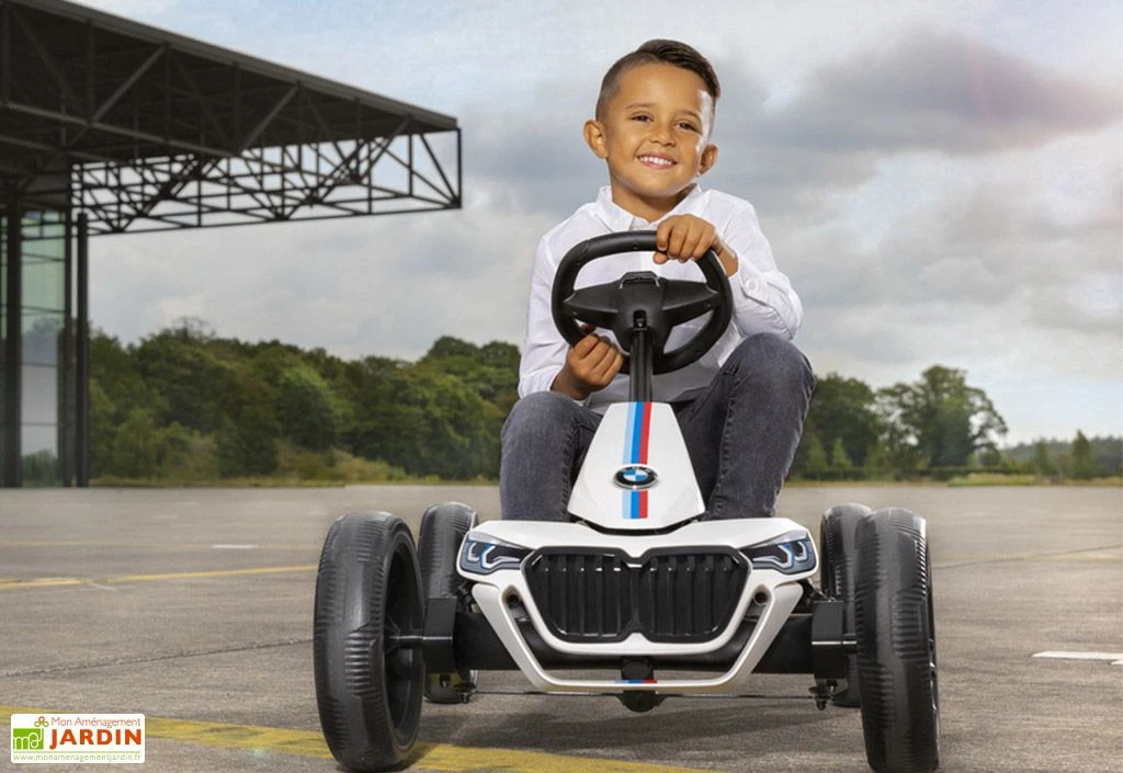 Léger et facile à transporter pour les parents grâce à sa poignée centrale, ce kart Berg n’en est pas moins robuste et confortable à la conduite. Il dispose en effet de pneus EVA et d’un essieu oscillant permettant de lui assurer une excellente adhérence et une grande stabilité, pour des conditions de conduite optimales et un bon confort de jeu.