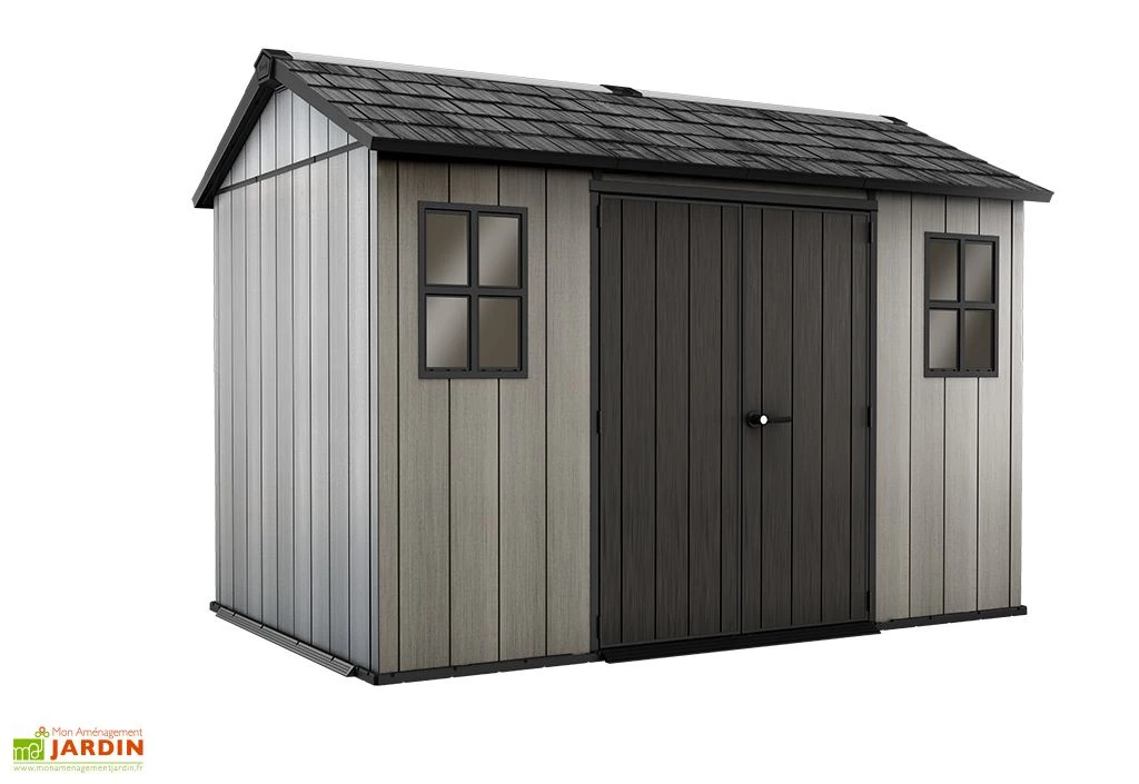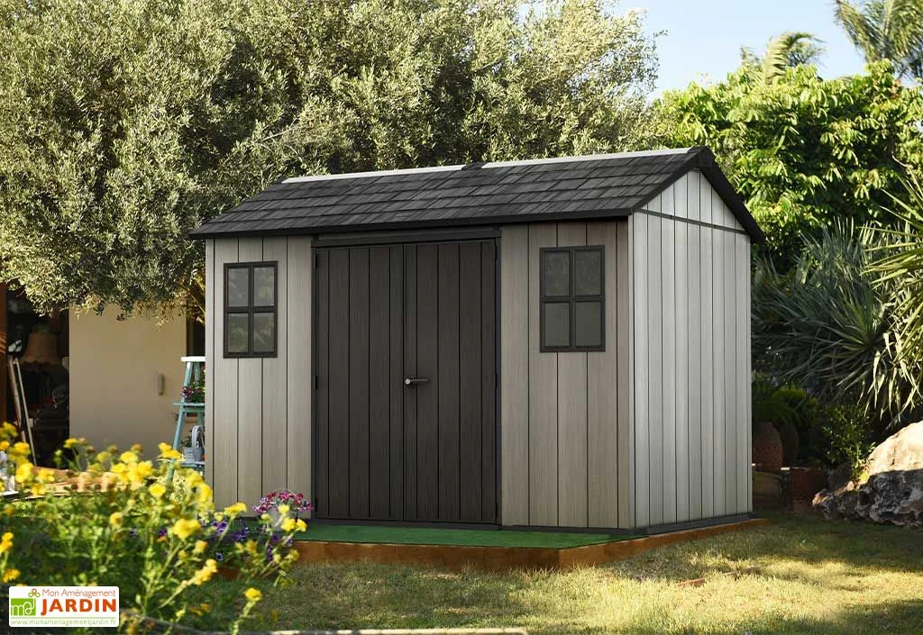 L’abri de jardin de chez Keter est en résine, un matériau naturellement résistant aux insectes, à la moisissure et à la rouille, qui ne demande pas d’entretien. Il imite parfaitement un bois poncé afin de se fondre dans le jardin. Sa structure épaisse à double paroi et son armature en acier en font un abri robuste. Les parois en polypropylène possèdent une épaisseur de 20 mm. La toiture imite les tuiles en 3D pour un esthétisme garanti.