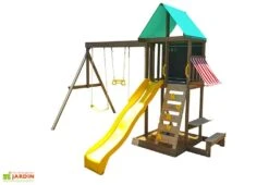 Principalement conçue en bois, cette cabane est teintée afin de la protéger des intempéries et de faciliter son intégration dans votre jardin. Ce revêtement réduit l’absorption de l’eau par le bois en cas de pluie mais son efficacité diminuant avec le temps, il est conseillé de traiter le bois afin de le protéger de manière efficace. Notez enfin que la cabane est livrée en kit et qu’elle devra dès lors être assemblée et montée par vos soins à l’aide de la notice détaillée également incluse. Elle occupera une surface de 1,68 m² une fois installée dans votre jardin.